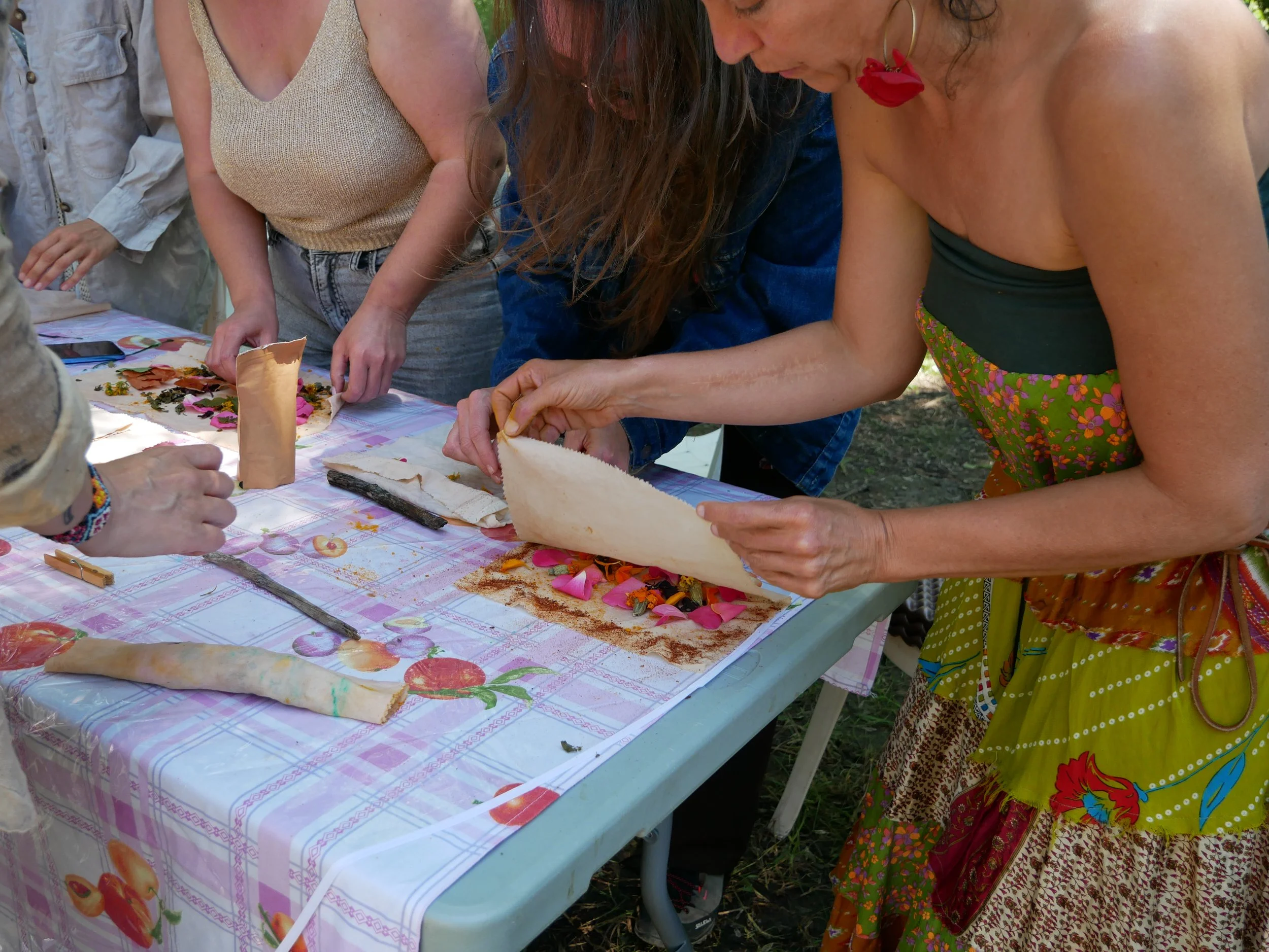 ~Atelier initiation à l’éco-impression avec les techniques du « bundledye », Tataki Zome et encre végétales sur papier et textile avec @sam_ectoplasm